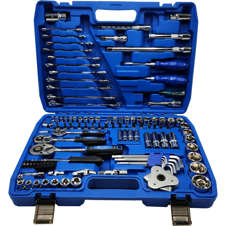 ۱۰ عدد بکس۱/۲( سایزهای ۱۷ تا ۳۲) ۸ عدد بکس ۳/۸(سایزهای ۹ تا ۱۶) ۱۰ عدد بکس ۱/۴( سایزهای ۴ تا ۱۳) ۸ عدد بکس E(سایزهای ۸ تا ۲۰) ۸ عدد بکس پایه بلند(سایزهای ۸ تا ۱۷) ۱۷ عدد بیت هولدر پیچ گوشتی(آلنی، ستاره ای، دو سو و چهارسو) ۱۸ عدد نوک پیچ گوشتی ( دو سو ،چهار سو، آلن و ستاره) سه سایز جغجغه ضامن دار کله گاوی بزرگ، متوسط و کوچک پنج عدد کمک بکس رابط بکس تاشو ۱/۲ و ۱/۴ و ۳/۸ دو عدد بکس شمع دسته پیچ گوشتی ۱/۴ ۳ عدد مبدل بکس به نوک پیچ گوشتی ۹ عدد آچار آلن(۱ تا ۱۰) و....